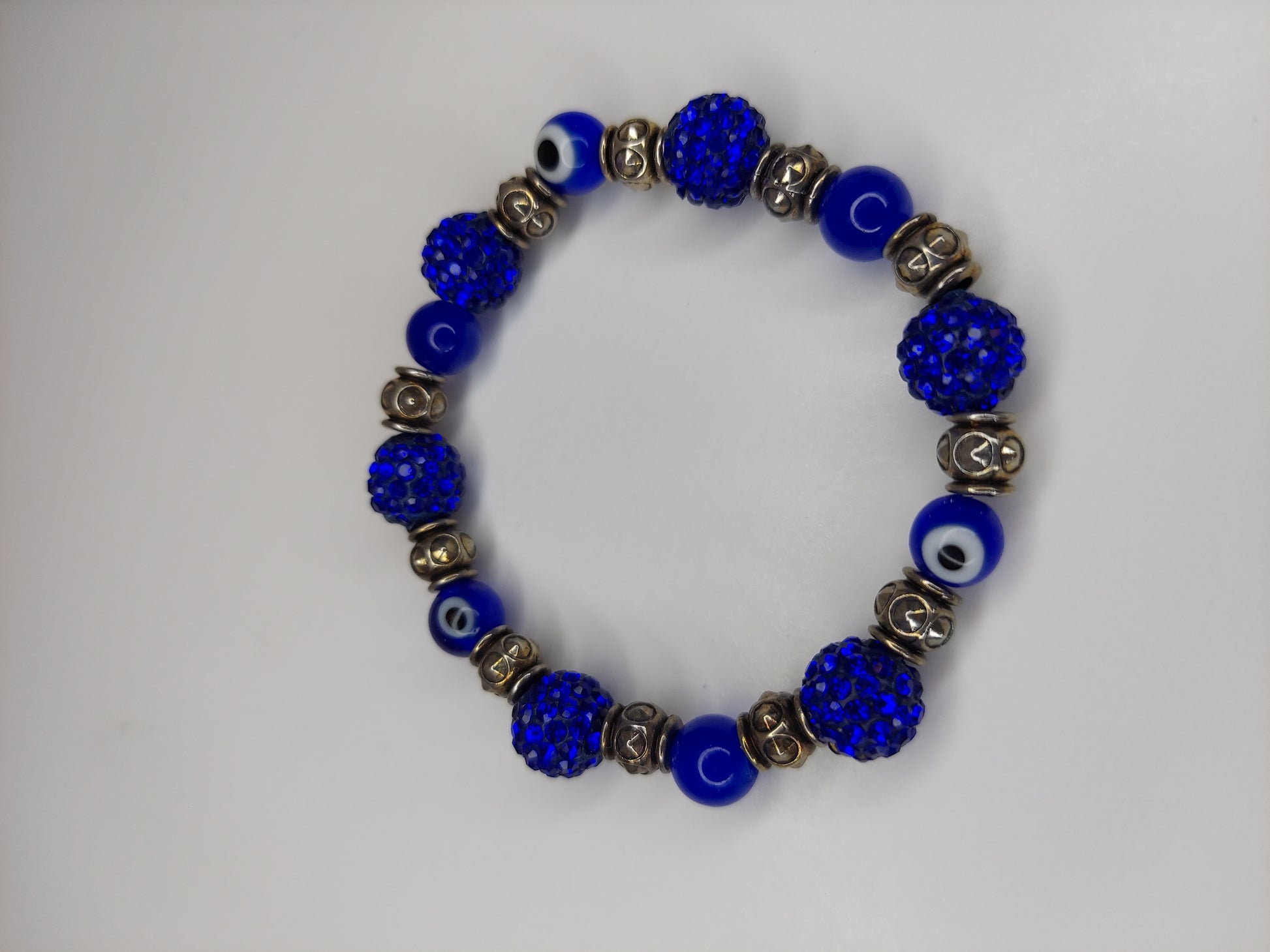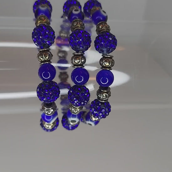 Blue and Metal Evil Eye Beaded Bracelet