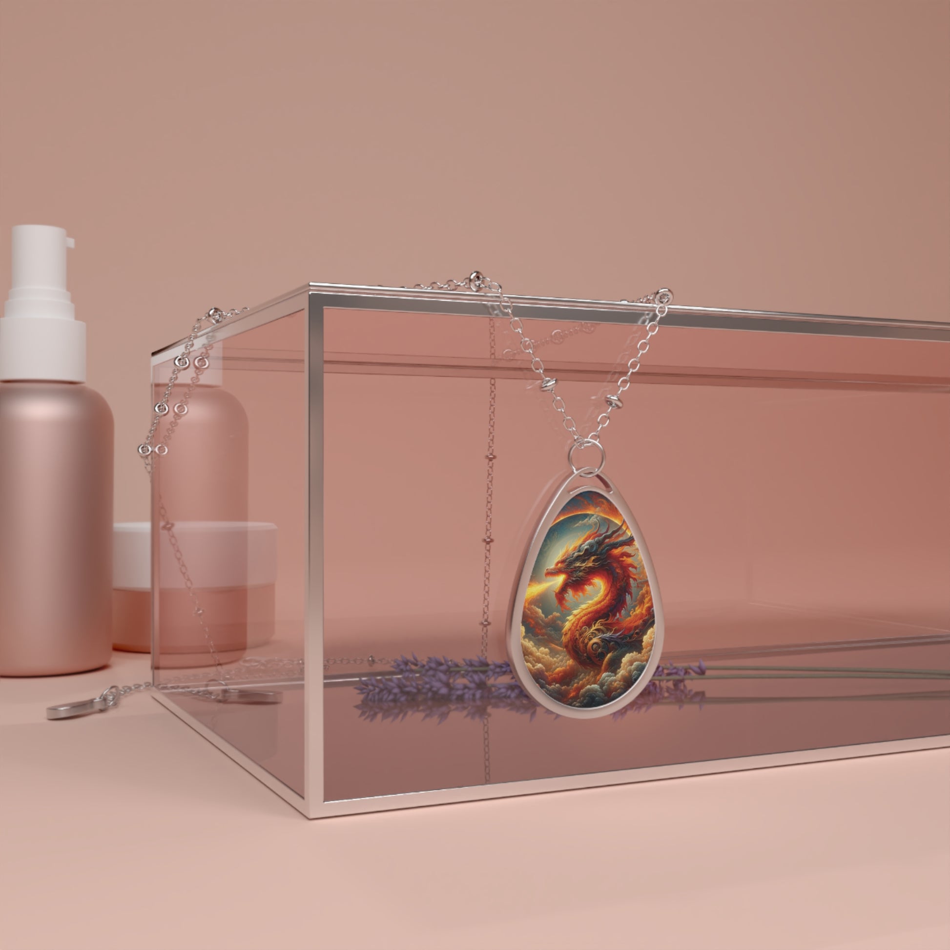 Dragon Themed Oval Necklace - Mystical Jewelry for Fantasy Lovers