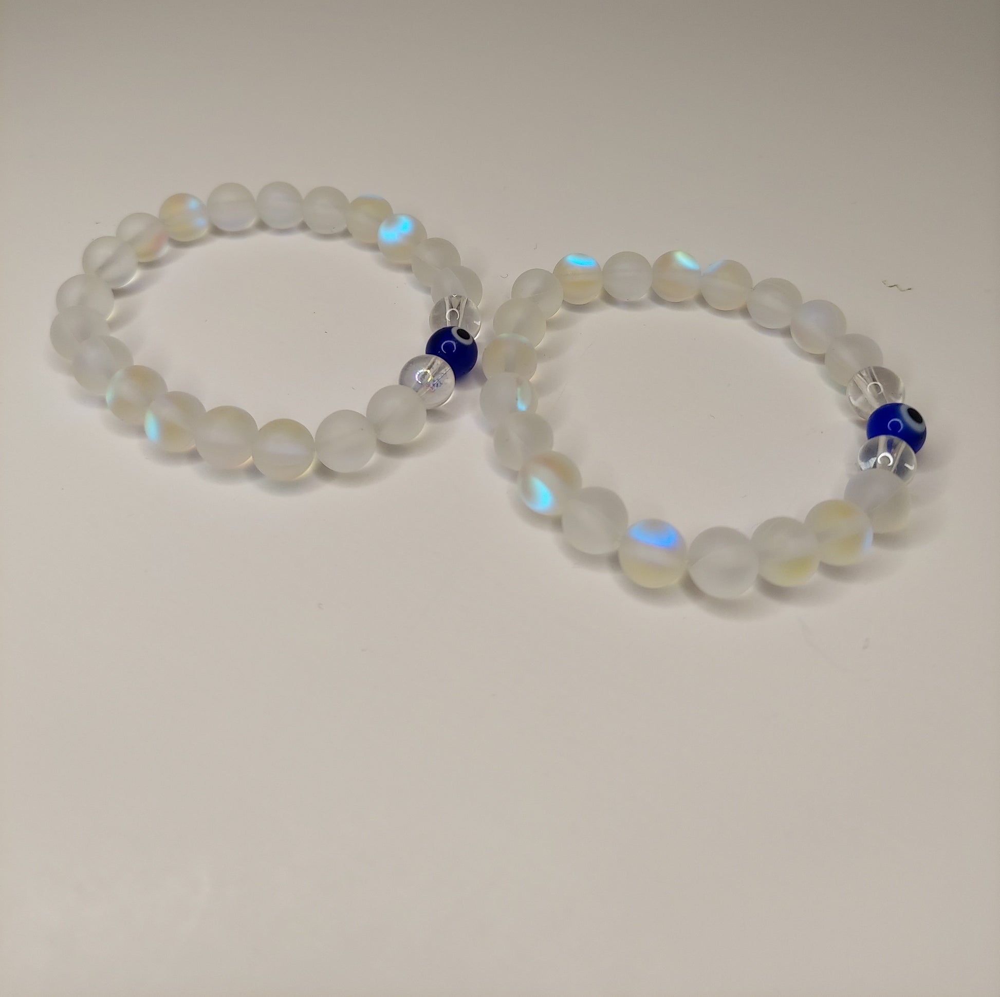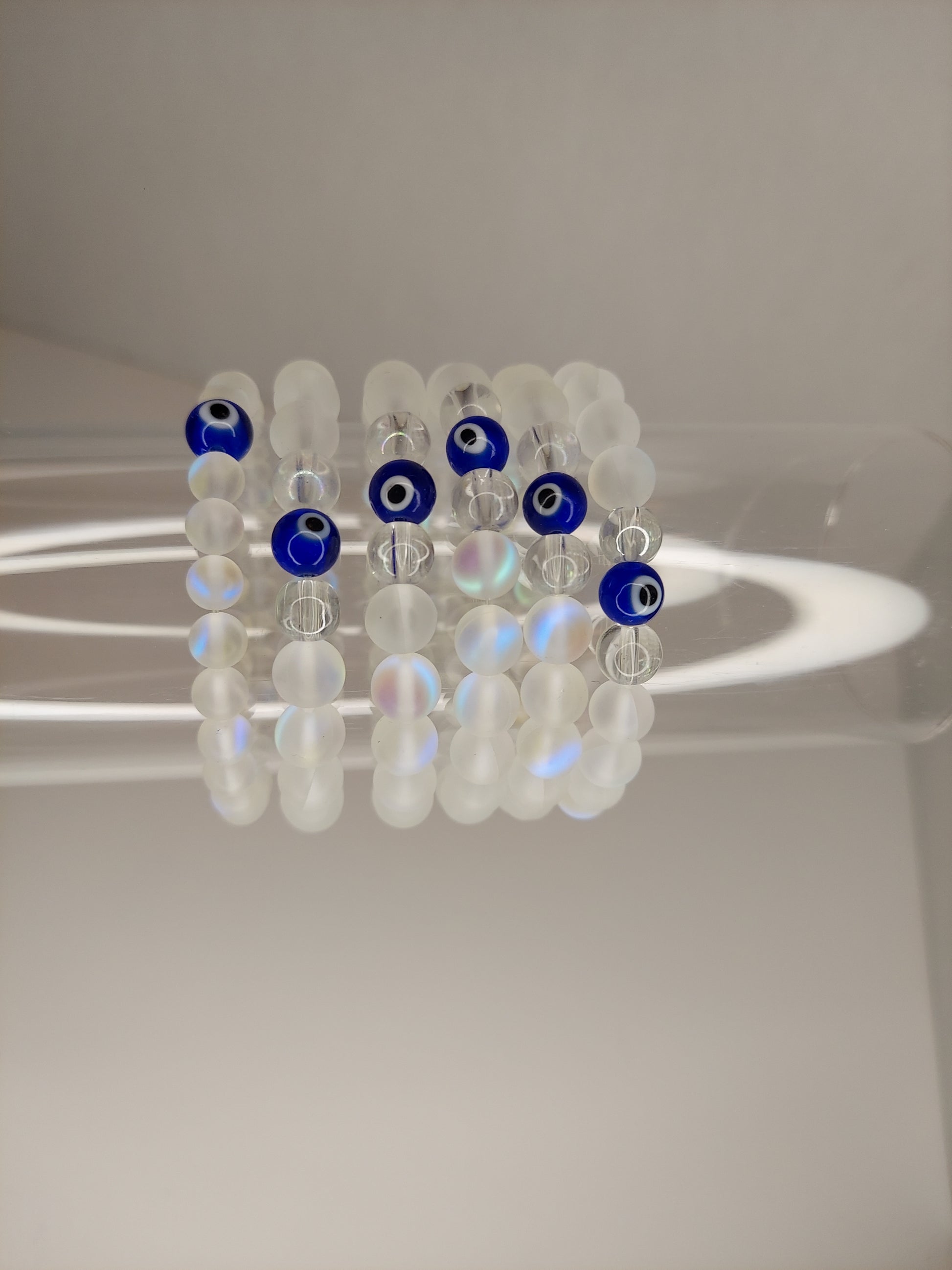 Opaque White Blue Evil Eye Beaded Bracelet (1pc)