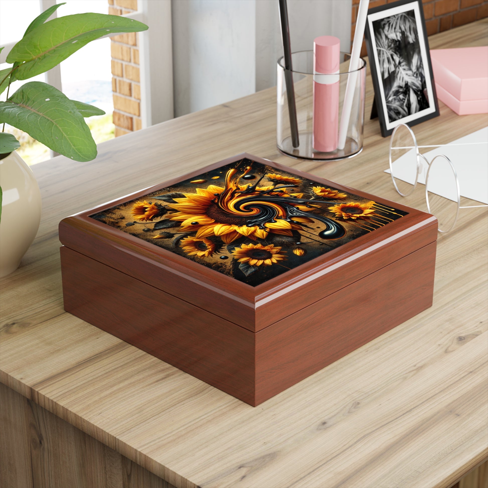 Sunflower Artwork Jewelry Box - Elegant Storage for Treasures