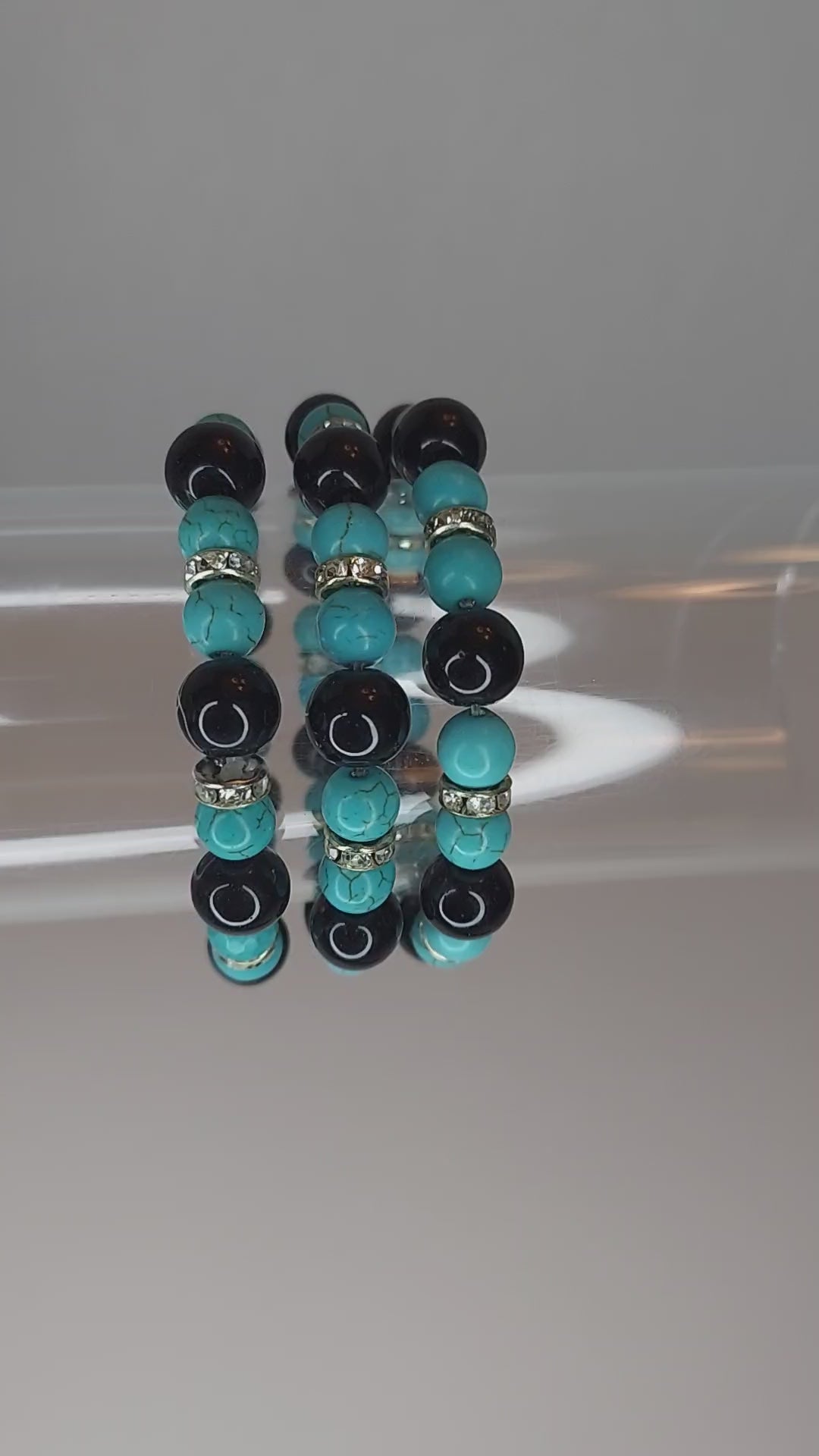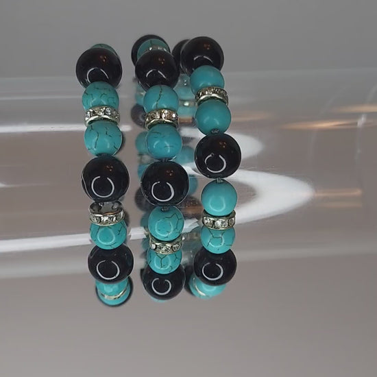 Turquoise Howlite and Black Glass Beaded Bracelet