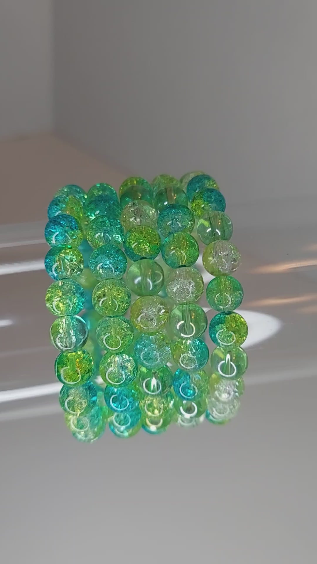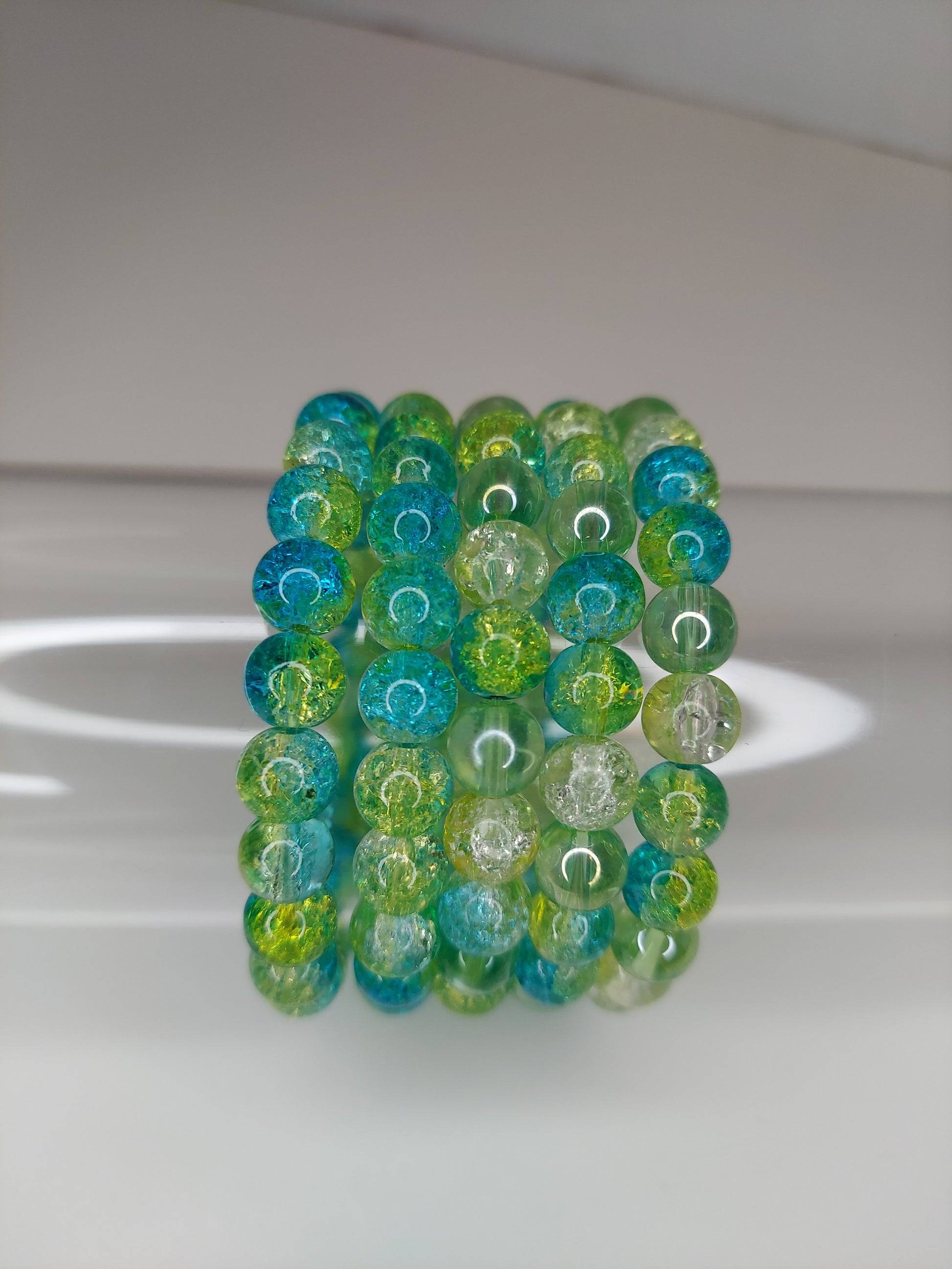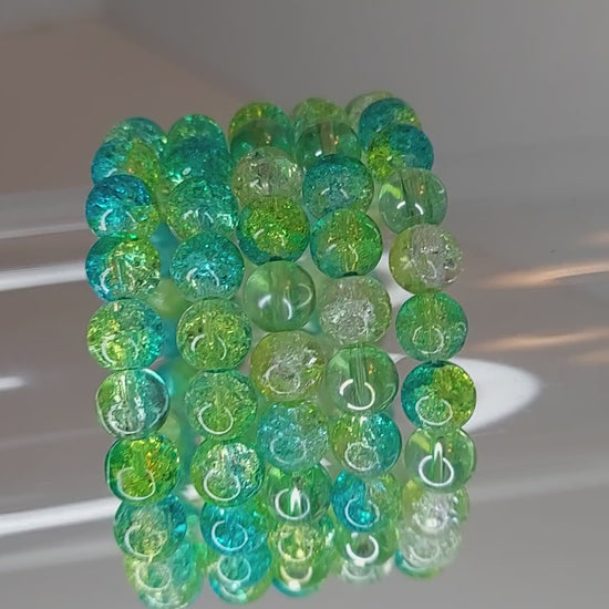 Yellow Aqua and Green Crackle Glass Beaded Bracelet